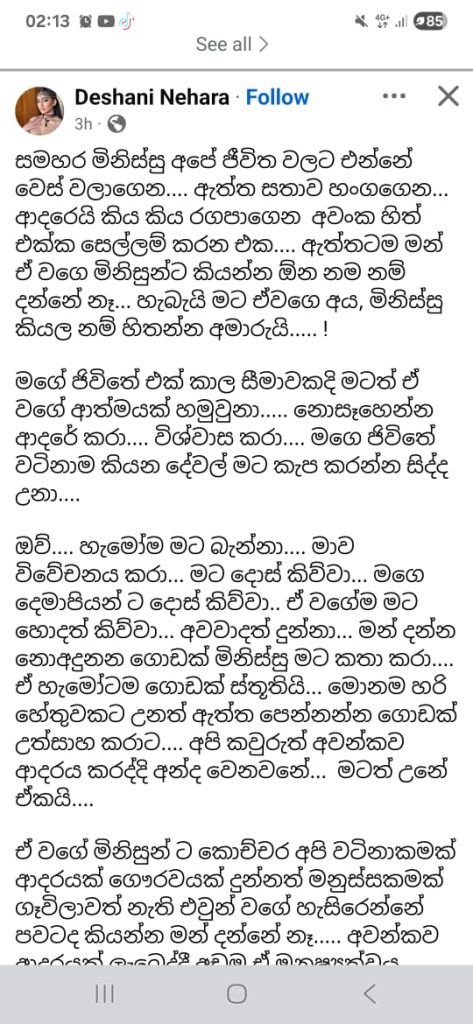 මන් මෙහෙම post එකක් දාන පලවෙනි වතාව…. ඔව්… මේක මගෙ පෞද්ගලික කාරනයක් සම්බන්ධව තමයි…හැබැයි මේක මුලු රටක් කතාබහට ලක් උන social medias වල දවස් ගනන් මාස ගනන් කතා කරපු දෙයක්… ඒ නිසයි මෙහෙම post එකක් දාන්න හේතුව… මොකද මෙතනින් පස්සේවත් අනවශ්ය ප්රශ්න අහන්න හිතන් ඉන්න අයට මන් හිතනවා දැන් යමි කිසි දැනුවතය් වීමක් ඇති කියලා….. මේ සම්බන්ධයෙන් මට මිනිස්සු බැන්නත් නැවත විවේචනය කරත්.. මෙක තමයි ඇත්ත… 🙏🏻