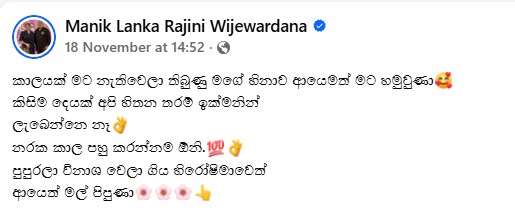 ඒත් එක්කම ඇය මුහුණුපොතට මෙන්න මේ වගේ සටහනකුත් එක්කර තිබුණා.