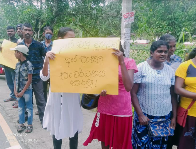 හතර ශ්රේණිය සදහා ගුරුවරයකු නොමැති බවත් උසස්පෙළ පංති සදහා ප්රමාණවත් පරිදි ගුරුවරු නොමැති බව ද මෙහිදි විරෝධතාකරුවන් සදහන් කළා.