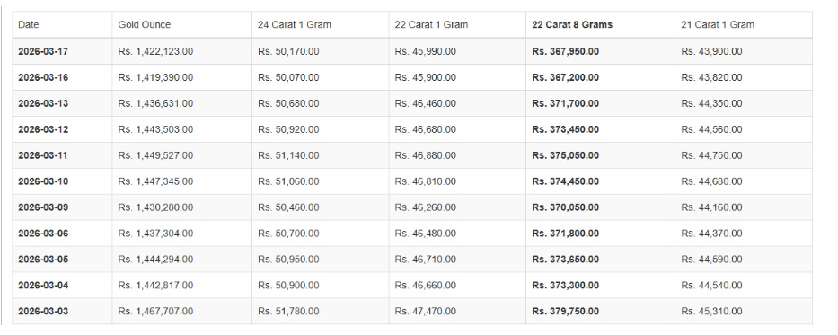 කැරට් 22 සහ 21 ග්‍රෑම් 1ක මිල පිළිවෙළින් රුපියල් 45,990.00ක් සහ රුපියල් 43,900.00ක් ලෙසයි සඳහන් වූයේ.