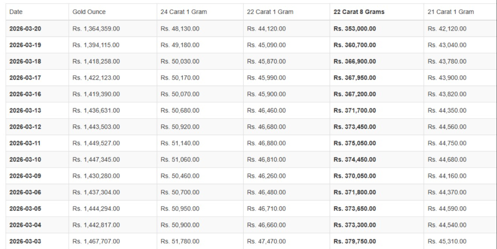 කැරට් 22 සහ 21 ග්රෑම් 1ක මිල පිළිවෙළින් රුපියල් 44,120.00ක් සහ රුපියල් 42,120.00ක් ලෙසයි සඳහන් වූයේ.