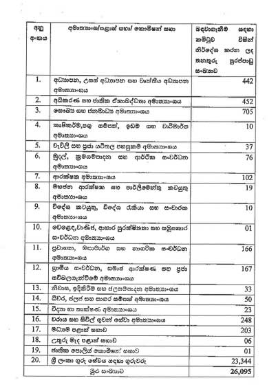එම කමිටුව වෙත ඒ ඒ අමාත්‍යාංශ විසින් එම අමාත්‍යාංශ යටතේ පවතින දෙපාර්තමේන්තු සහ අනෙකුත් ආයතනවල පවතින තනතුරු පුරප්පාඩු සම්පූර්ණ කිරීම සඳහා ඉදිරිපත් කරන ලද ඉල්ලීම් සැලකිල්ලට ගෙන, කමිටුව විසින් නිර්‌දේශ කරන ලද පහත සඳහන් බඳවාගැනීම් සිදු කිරීම සඳහා අදාළ අමාත්‍යාංශ සහ ආයතන වෙත අනුමැතිය ලබා දීමට අගමැතිනිය ඉදිරිපත් කළ යෝජනාවට මෙලෙස අනුමැතිය හිමිව තිබේ.