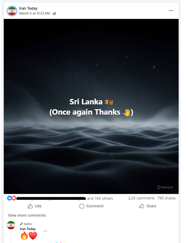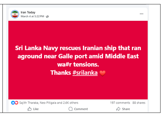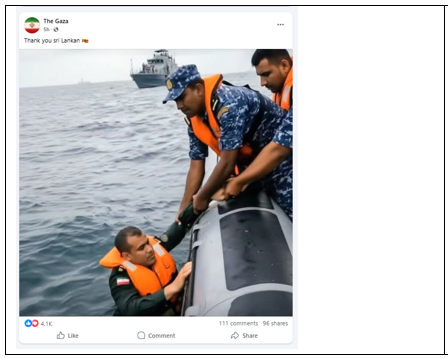 ශ්‍රී ලංකාවට සහ ශ්‍රී ලංකා නාවික හමුදාවට ඉරානය ප්‍රමුඛ කලාපයෙන් ලැබෙන කෘතඥතාව