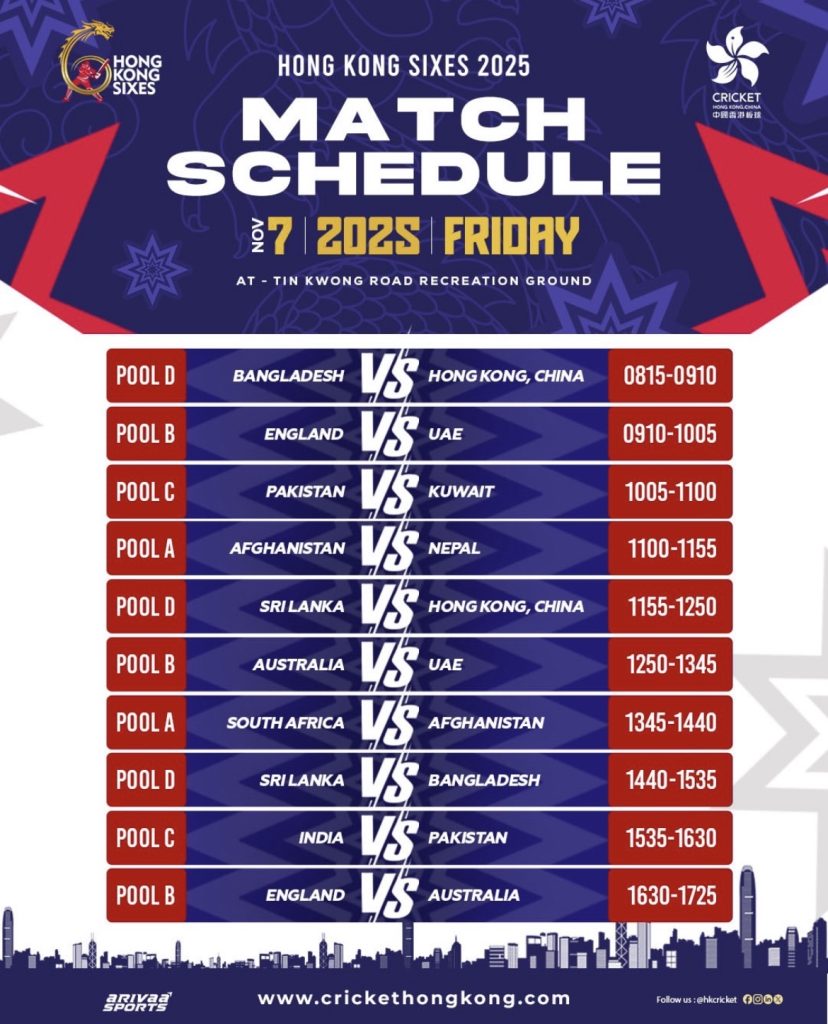 2025 හොංකොං සික්සර්ස් ක්‍රිකට් තරගාවලිය නොවැම්බර් මස 7,8 සහ 9 යන දිනයන්වලදී හොංකොං හිදී පැවැත්වීමට නියමිතව තිබේ.