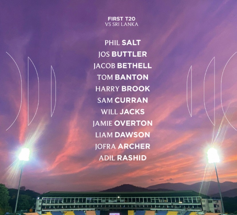 මෙම තරගයට එක්වන එංගලන්ත කණ්ඩායම ප්රකාශයට පත් කර තිබේ.