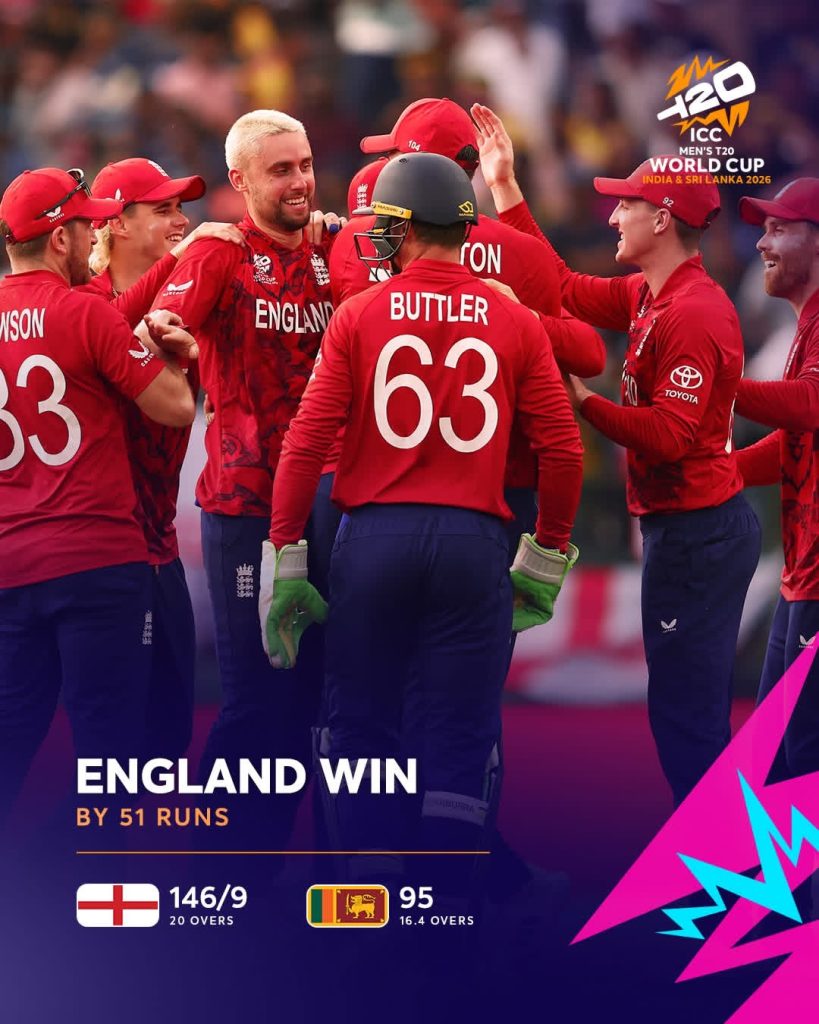 මෙවර T 20 ලෝක කුසලානයේ ශ්රී ලංකාව හා එංගලන්තය අතර සුපිරි 8 තරග වටයේ පළමු තරගයෙන් ලකුණු 51ක පරාජයක් ශ්රී ලංකා කණ්ඩායම අත් විඳ ගත්තේය.