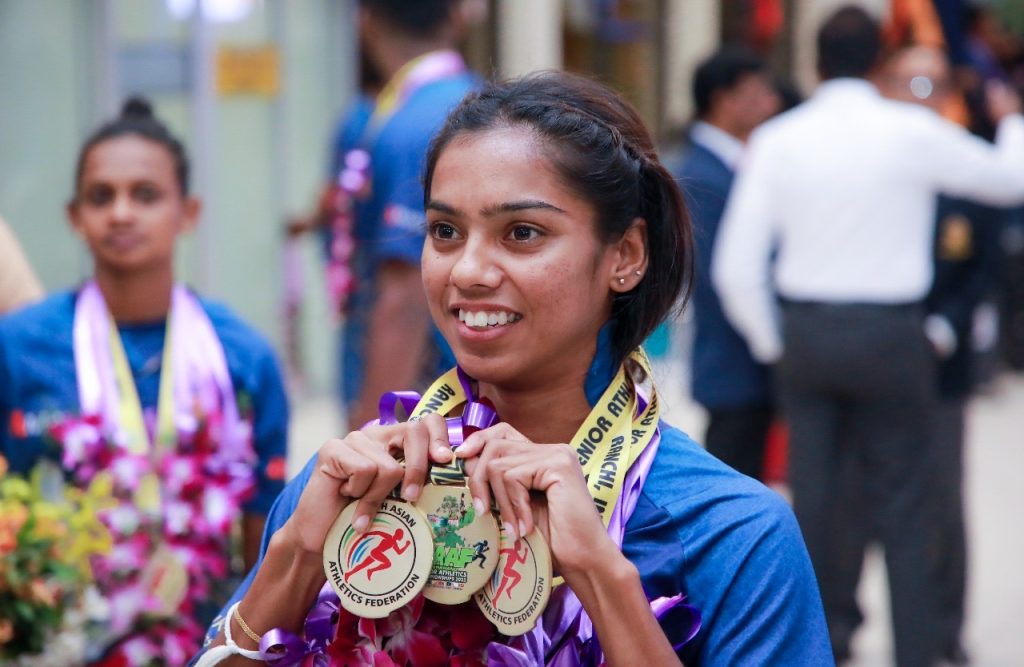 දිවයිනට පැමිණි ශ්රී ලංකා මලල ක්රීඩා කණ්ඩායම හරසරින් යුතුව පිළිගනු ලැබුවේය.