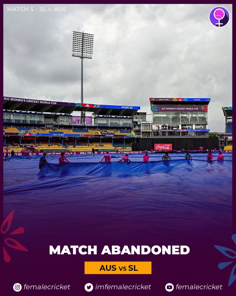 2025 කාන්තා එක්දින ලෝක කුසලානයේ ශ්රී ලංකා – ඔස්ට්රේලියා තරගය වර්ෂාව නිසා අත්හැර දැමීමට පියවර ගත්තේය.